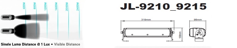900m (1200m) Rallye Power MAXTEL LED60.JL9220/25 Abmessung: 604mm x 96mm x 98mm - ECE (Pencil Beam)-Lichtverteilung: 1lx in ca. 600m (800m) - 0,25lx in ca. 1200m (1600m) |